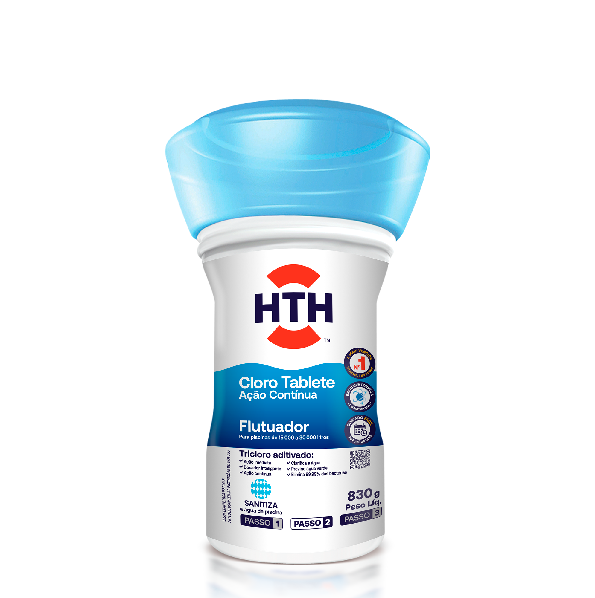 O Cloro Flutuador HTH 830g foi desenvolvido para manter a piscina sempre limpa e tratada de forma prática e eficiente, liberando cloro aos poucos e garantindo a higienização contínua da água.