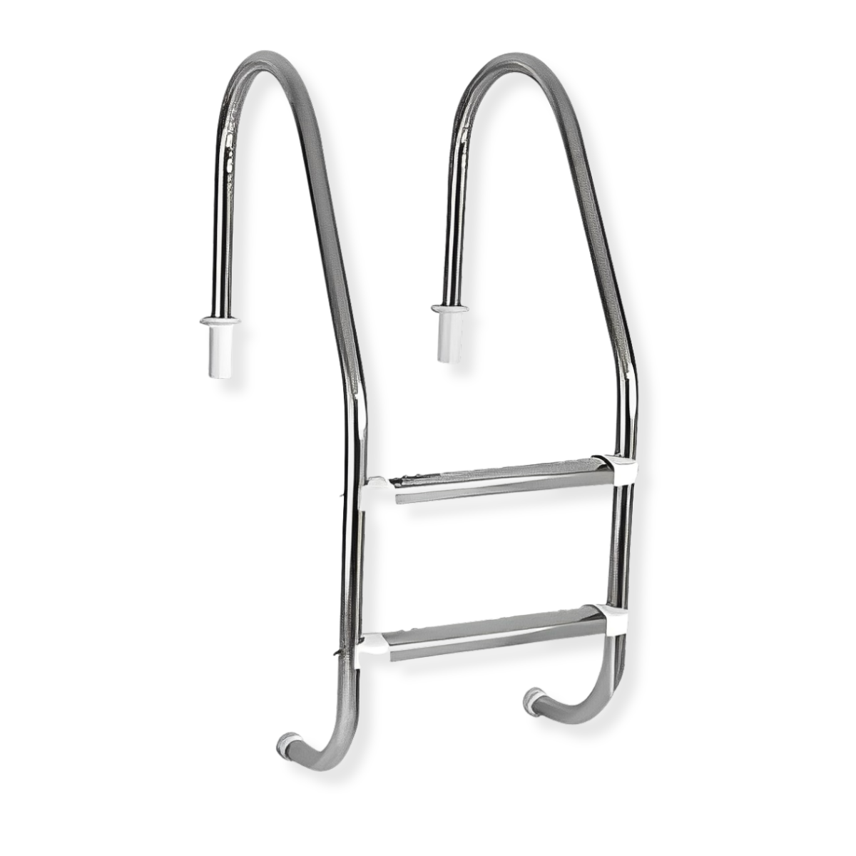 Esta escada é feita em inox, com tubos de 1 1/2 polegadas que proporcionam firmeza na fixação. Os degraus possuem acabamento que evita derrapagem, aumentando a segurança ao entrar ou sair da piscina. Ideal para piscinas residenciais que precisam de acessibilidade prática e segura.